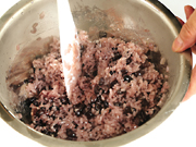 (3)と(2)を混ぜる。水は米がしっかりひたるくらい入れる。(90分以上置く)